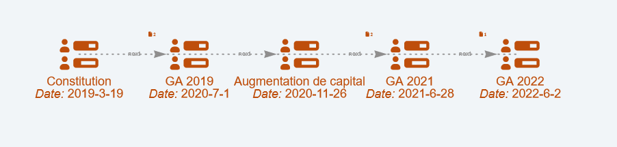 If you want to overview of the structure of the shareholders for example, and the history of the general assemblies, you may just navigate the governance graph with simple clicks.